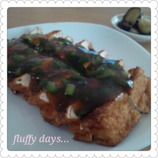ニラあんかけの厚揚げステーキは、他のレシピで作ったこともあるのですが、材料少し、手順も少しのあな吉さんレシピ、あっという間にできあがりました^^; こどもたちは余ったあんをごはんに混ぜて、おかわりも食べていました。。