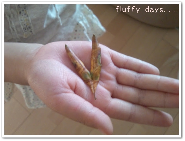 こちらは同じく金曜日にリンが拾ってきたハート型の葉っぱ。
