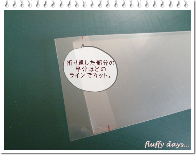 4) 折り返していない方の1枚を、折り返した部分の約半分のラインでカットする。