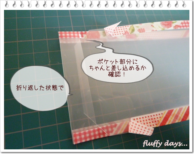 6) ポケット部分を折り返したまま、上下の2辺ににマステを貼る。