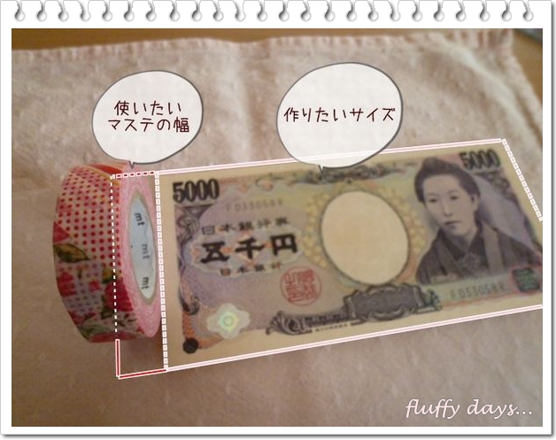 2) 作りたい大きさの横に、使いたいマステの幅を足した大きさでカットする。
