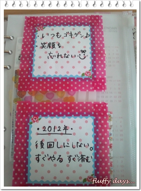もう1枚は2012年のわたしの目標、「後回しにしない。すぐやる、すぐ済む」です。
