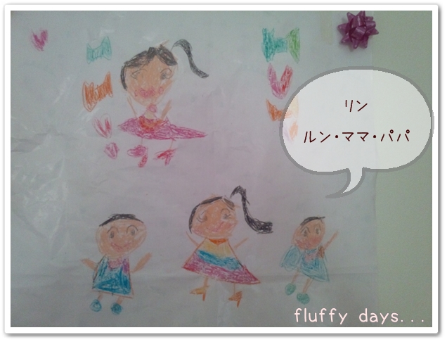 とパパがリクエストしたら、パパとママとルンも描き加えてくれました。