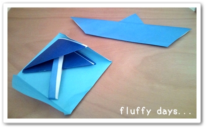 こちらは今朝、こどもたちが折って持ってきてくれた作品。