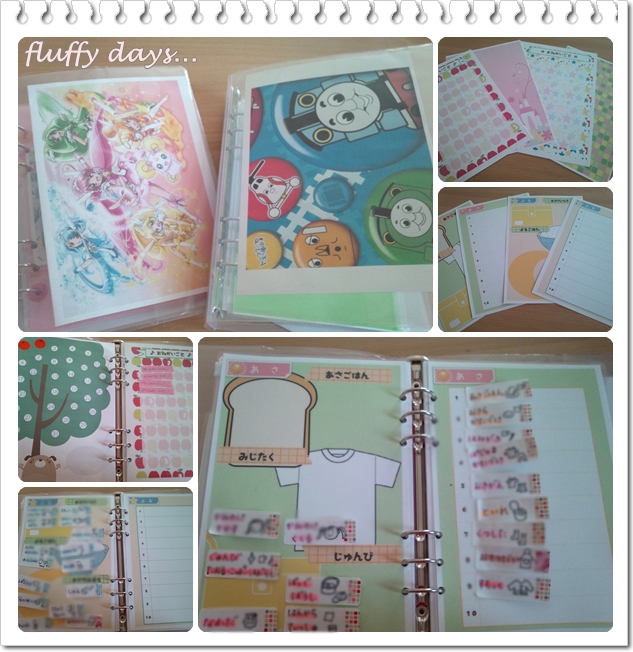 ある程度決まったら、100円ショップを巡ったり、ネットサーフィンしまくって素材集め。もともと持っていたものの他に、こども手帳に使えそうなものを集める作業は楽しくもありましたが、なかなか大変でした~^^;